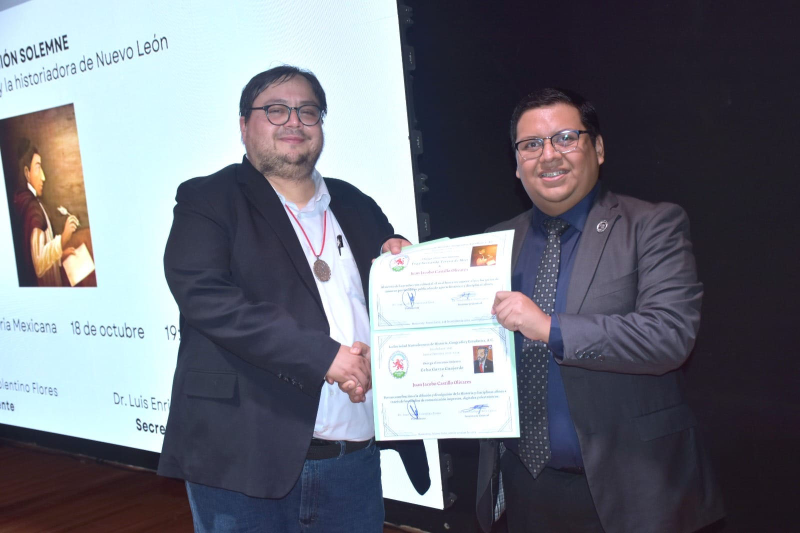 Posteriormente, se llevó a cabo la entrega de los reconocimientos “Fray Servando Teresa de Mier” al mérito a la producción editorial, así como el “Celso Garza Guajardo”, a la difusión histórica; las y los merecedores recibieron las distinciones de manos del vicepresidente.