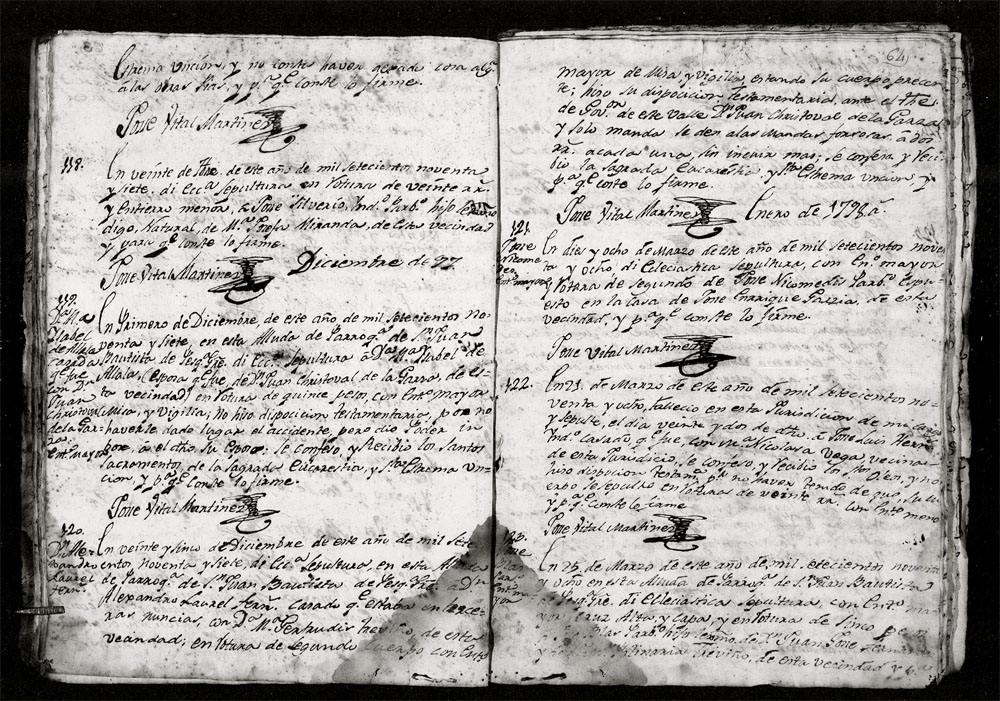 Defunciones de la Parroquia de San Juan Bautista, García, Nuevo León, México, https://familysearch.org/ark:/61903/1:1:DYCD-TKW2, 1 Dic 1797.